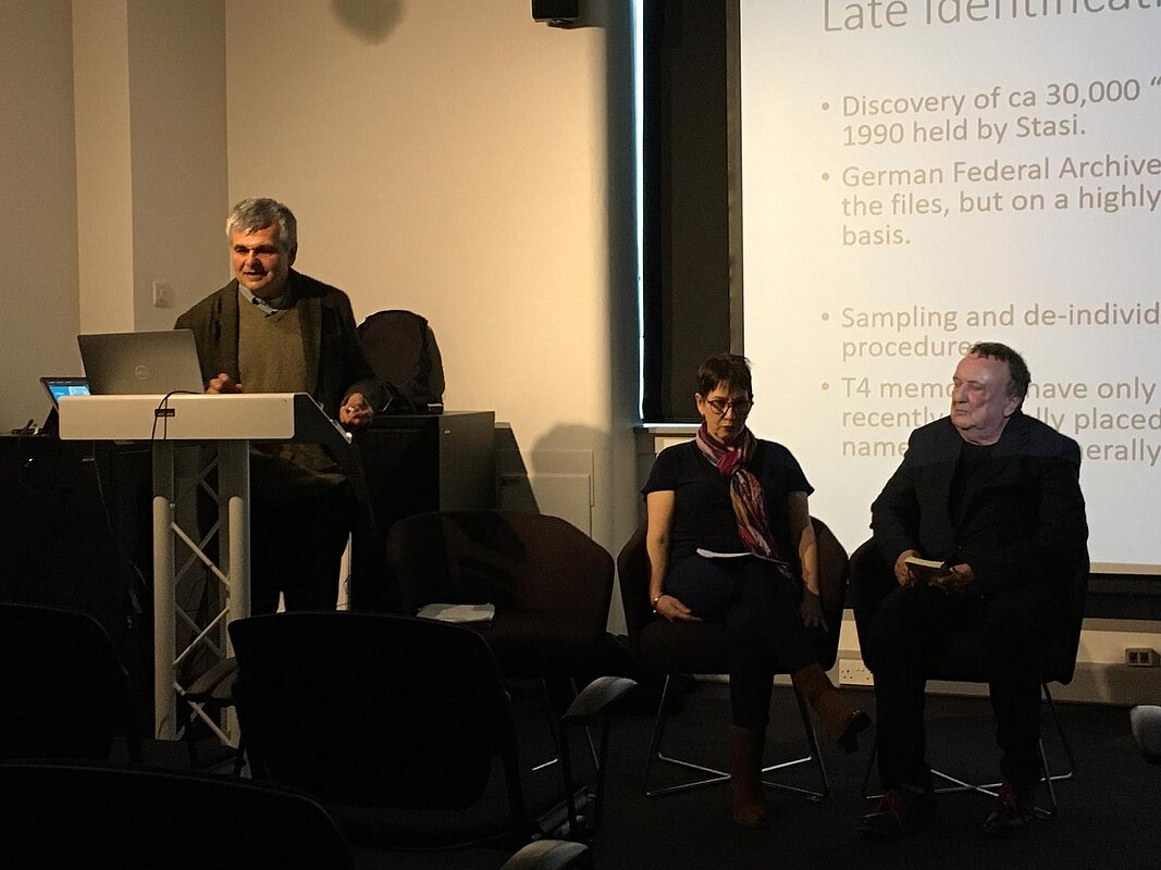 It was presented for the first time in the UK on Wednesday 10 April 2024. Nursing scientist Helen Atherton (University of Leeds) and expert on the history of Nazi medicine Paul Weindling (Oxford Brookes University) spoke at the opening . On Monday, April 15th, a commentary on the exhibition by well-known journalist Dominic Lawson appeared in the high-circulation British newspaper 'Daily Mail'.