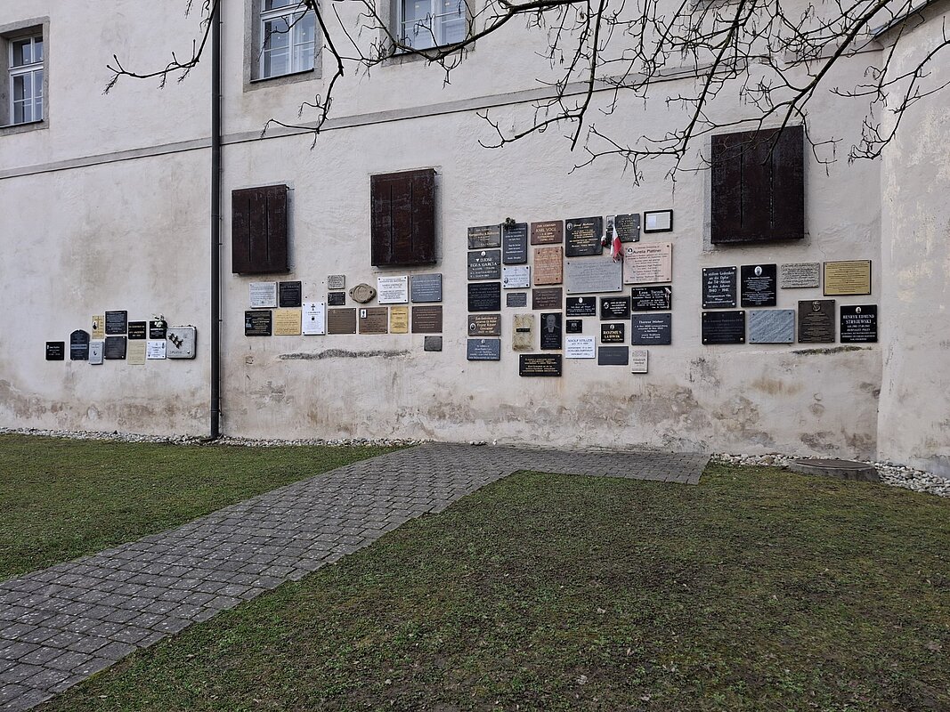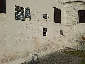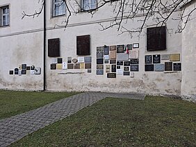 The commemorative plaques mounted on the castle wall at the Cemetery for the Victims of Nazi Euthanasia have been removed to allow for renovation work on the castle’s exterior facade.