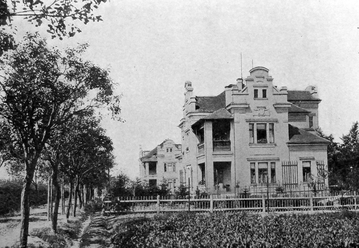 - Die Pflegeanstalt besteht auf der Männerseite aus an der Peripherie angecastleenen 3 Pavillons, auf der Frauenseite aus 4 Pavillons. Zur Pflegeanstalt sind auch die als Kolonie I bis VI bezeichneten Gebäude zu zählen, von denen Kolonie III bis VI im Jahre 1891 für etwa 200 meist arbeitende Kranke erbaut wurden. Sämtliche 22 Krankengebäude sind von mit Weissdornhecken begrenzten Gärten umgeben, mit Ausnahme der Gebäude für Unruhige, woselbst der Garten von einer Mauer umgeben ist. Die im I. Stocke dieses Gebäudes für verbrecherische Irre bestimmte Abteilung unterscheidet sich nur durch die vor den Fenstern angebrachten starken Gitter.